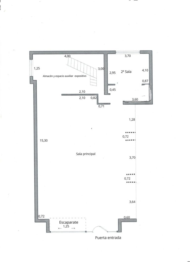 La galería cuenta con tres espacios expositivos, diseñados para adaptarse a distintos formatos y lenguajes artísticos. Dispone de paredes blancas, iluminación técnica regulable y una distribución que facilita una lectura clara y coherente de las exposiciones. El espacio permite acoger proyectos individuales y colectivos.