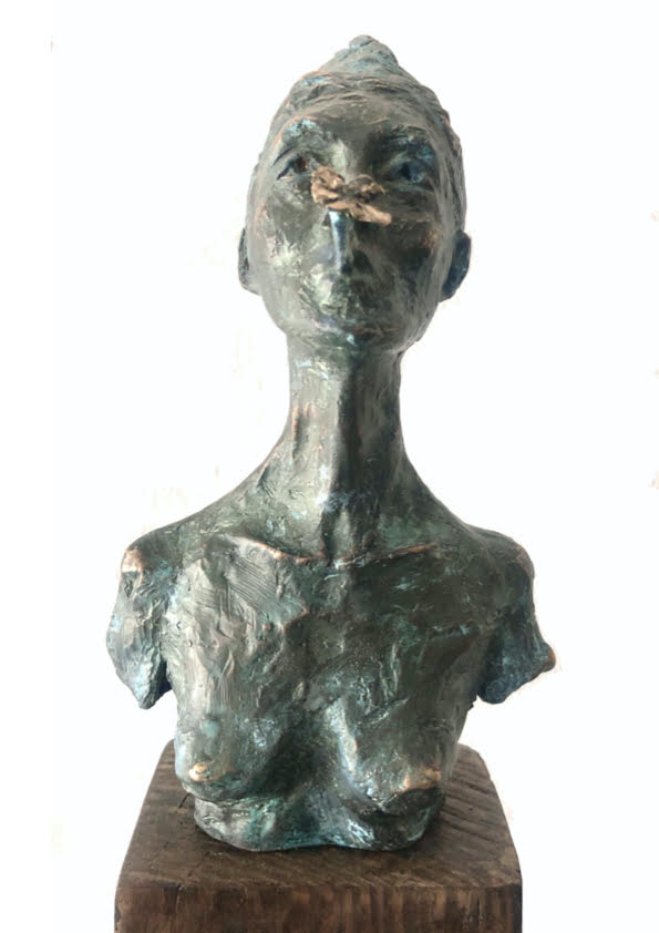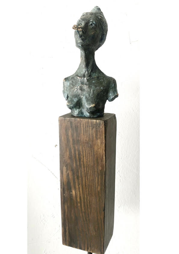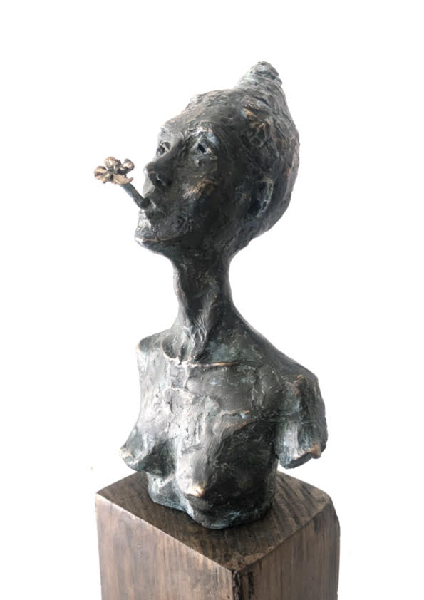 CARMEN ALMÉCIJA «La flor de la intuición». Escultura. Escultura en bronce con pátina sobre base de madera. Destaca por su expresividad figurativa, maestría técnica en texturas y una gran sofisticación.