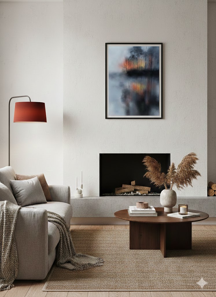 Es una pieza para interiorismo de lujo. Su paleta de grises neutros con acentos en ocre y bermellón la hace extremadamente versátil para espacios corporativos o residenciales de estilo minimalista o industrial.