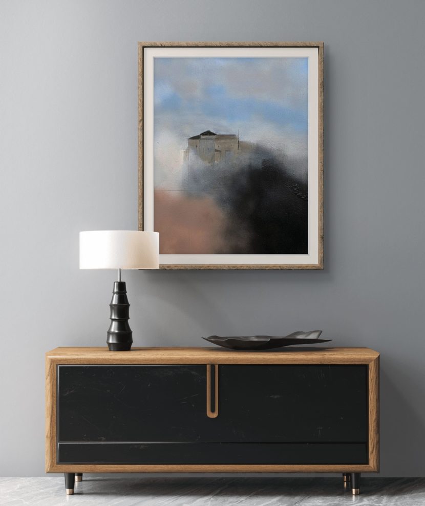 «La maestría de Forriol se manifiesta en este juego magistral de claroscuros. El peso de la materia oscura en el primer plano resalta la delicadeza de la edificación iluminada, creando una profundidad visual que atrapa la mirada. Una obra contemporánea que equilibra la fuerza del trazo con la sutileza del paisaje vaporoso. Disponible exclusivamente en nuestra web